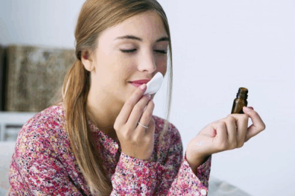 - Campur 5 tetes minyak dengan 1 sdm minyak kelapa (carrier oil)