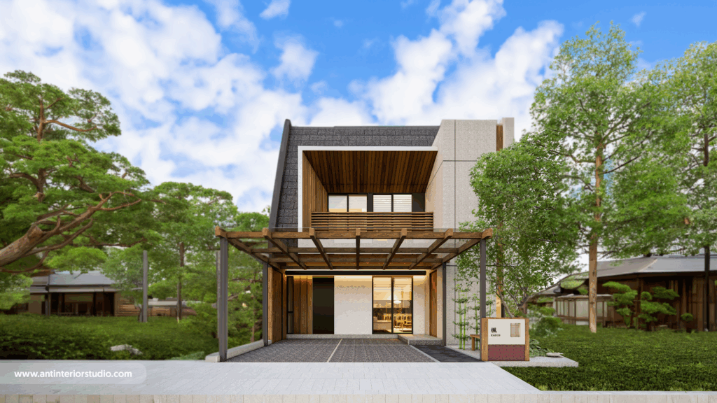 - Integrasi dengan alam: taman vertikal, pencahayaan alami, kolam